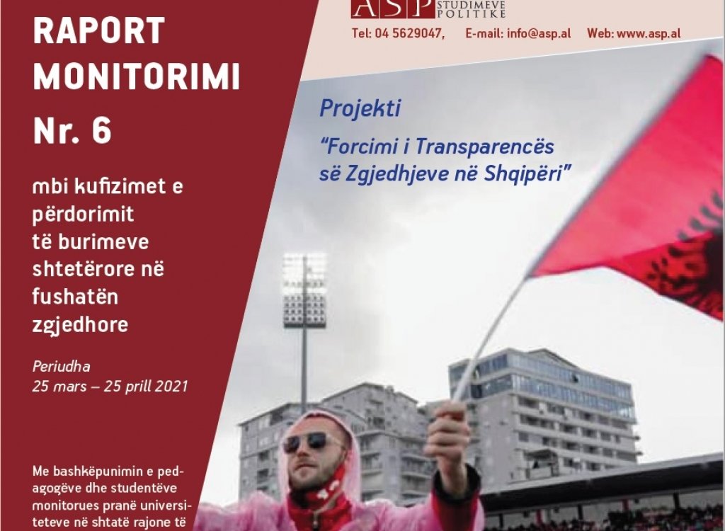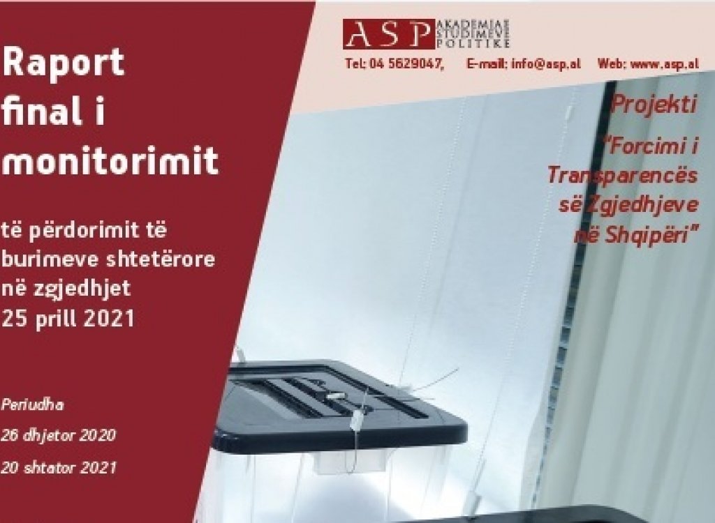 The fifth Report on Monitoring the Use of State Resources in the Election Campaign, drafted by the Academy of Political Studies under the project "Strengthening Election Transparency in Albania" (SETA), was published. This report reflects the monitoring findings for the period 25 March - 25 April 2021