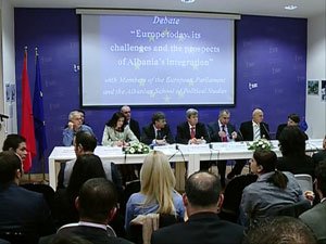 Delegacioni i Parlamentit Evropian për Evropën Juglindore zhvilloi sot një debat me pjesëmarrësit e programit të "Shkollës Shqiptare të Studimeve Politike". Eurodeputetët Eduard KUKAN (Kryetar i Delegacionit), Victor BOSTINARU (Zv/Kryetar) dhe anëtarët Tanja FAJON, Stanimir ILCHEV, Michail TREMOPOULOS, diskutuan me pjesëmarrësit e shkollës mbi sfidat e Bashkimit Evropian dhe perspektivën e integrimit të Shqipërisë, në një moment mjaft të rëndësishëm për hapat e mëtejshëm të vendit në këtë rrugë.